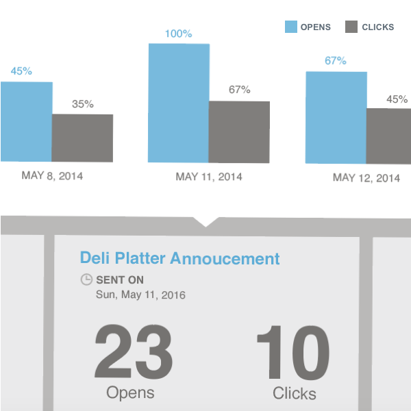 If you don't know what's working, you don't know what to improve. Best-in-class deliverability means your emails reach your customers' inboxes. And with real-time email tracking, you can monitor everything from opens and clicks to survey responses and coupon redemptions.